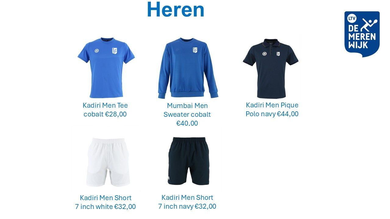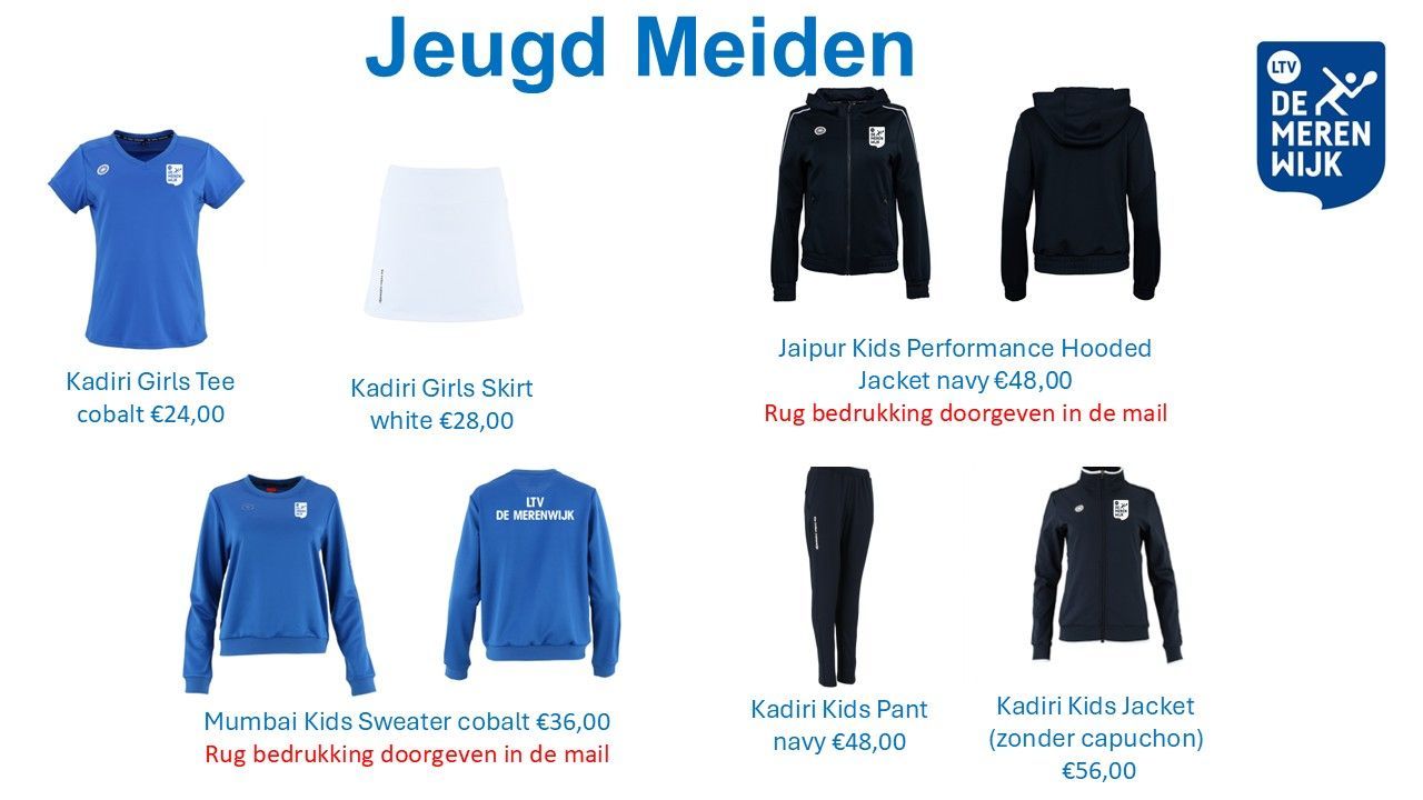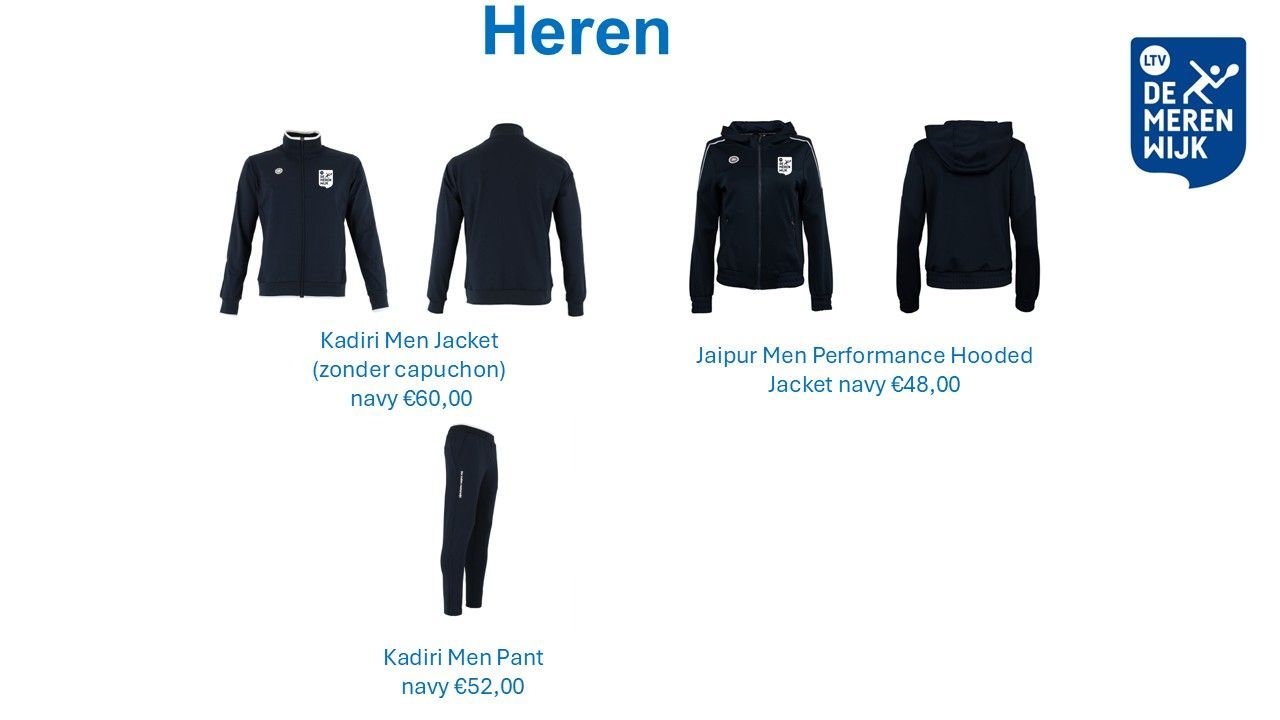 🔹 Let op! Bestel je een vest of trui voor de jeugd, vermeld dan in je mail dat naast het logo (voorkant) ook LTV de Merenwijk op de rug gedrukt moet worden.